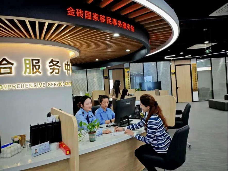 في 9 أبريل 2025، في مدينة شيامن بمقاطعة فوجيان، قامت موظفة محطة خدمات شؤون الهجرة في "حديقة الصين–دول بريكس للابتكار العلمي والتكنولوجي في العصر الجديد" بإنجاز المعاملات للأجانب.